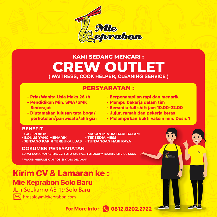 CREW OUTLET MIE KEPRABON (WAITRES, COOK HELPER, CLEANING SERVICE)